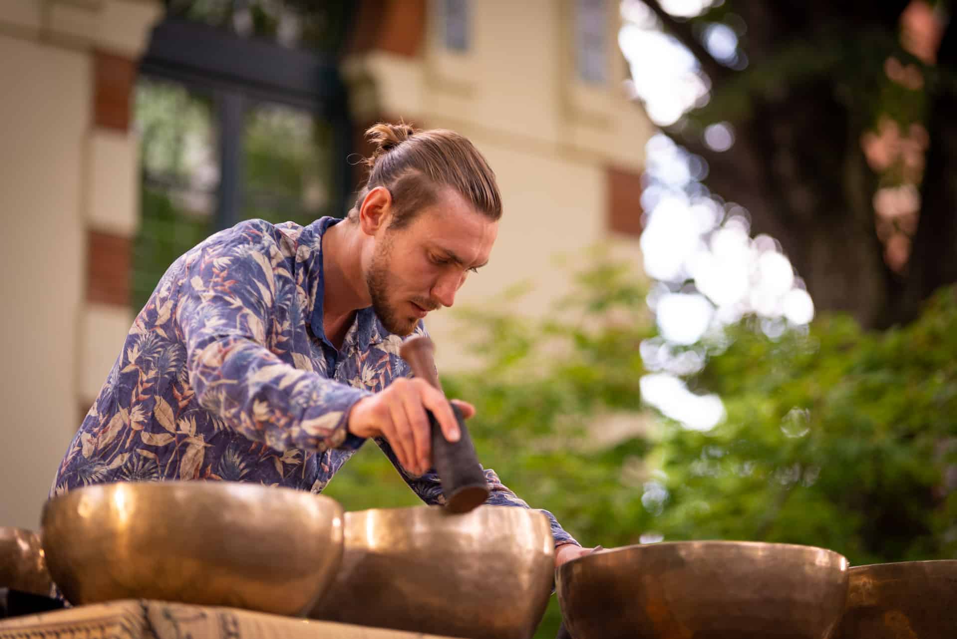 Il aura aussi un stand pendant ces trois jours du festival où il présentera une collection complète de bols chantants tibétains martelés à la main par des artisans indiens, sélectionnés minutieusement selon différents critères : qualité vibratoire, tenue de la note, richesse des harmonique. Ces bols chantants tibétains 7 métaux seront parfaitement adaptés pour vos voyages sonores, séances de reiki, de thérapies sonores et pour tous vos rituels.